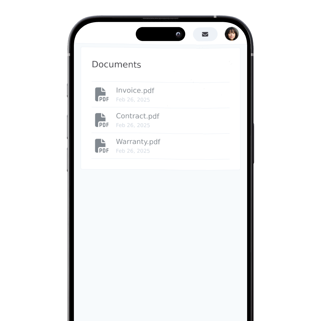 Everything about your Solar Project, from the Contract, to Invoices, Warranties, Manuals and more are made available to you within a dedicated area in the app. You will never wonder where any of your important documents are.